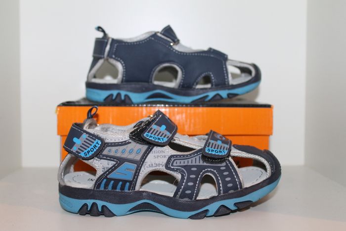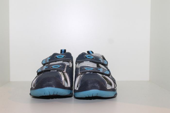 sandales nus pieds bleus pointure 30 neuves dans boites,model avec 3 velcros pour un serrage au plus juste et fermer au bout pour éviter que les doigts de pieds de dépassent.dimensions semelle intérieur 18 cm en mesurant au milieu de la semelle devant et derrière. marque infiniti shoes. réf 0641 n'hésitez pas à faire un lot.