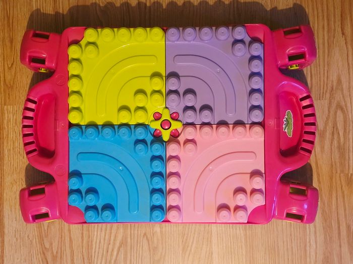 Lot Table d'activités + cubes de construction Princesse de la marque Mega-Blocks. Table gain de place qui se plie espace de rangement pour les cubes à l'intérieur de la table. En très bon état(2 autocollants abîmés se retire facilement).