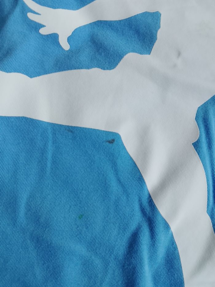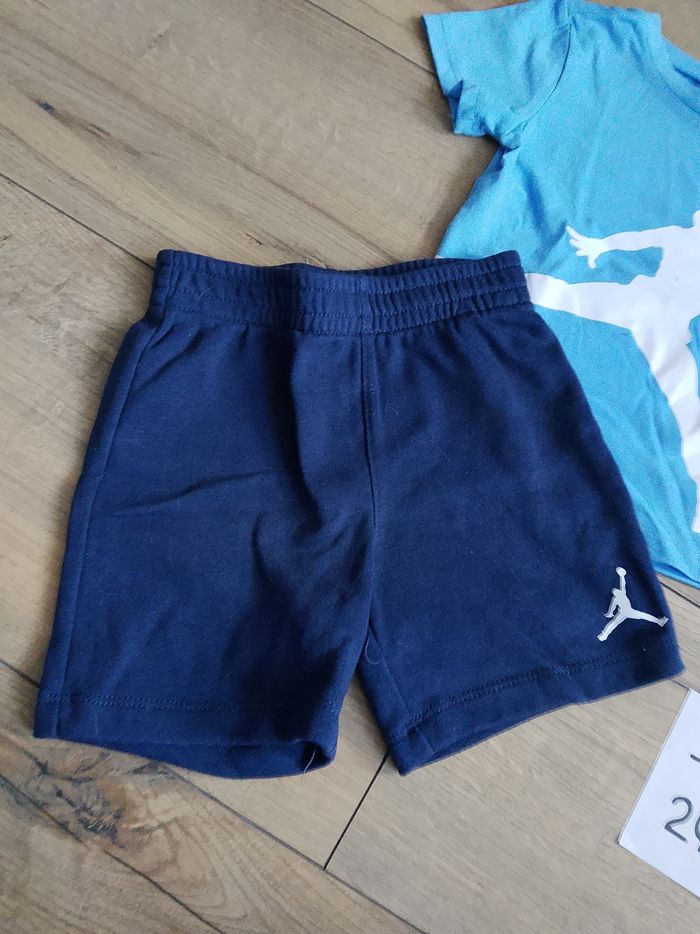 Ensemble composé d'un t-shirt manches courtes et d'un short. En taille 18-24 mois. De la marque Jordan. Le short n'a rien mais le t-shirt a 2 petites tâches sur le devant (voir photo), assez discret. Maison non fumeur mais avec animaux.