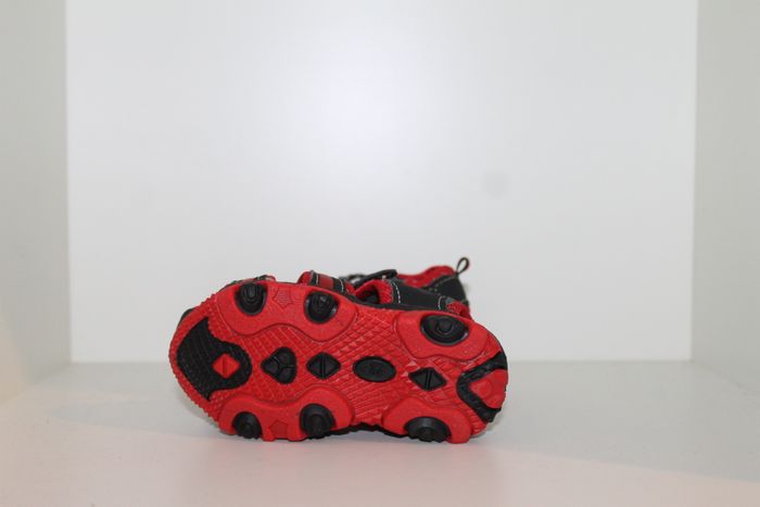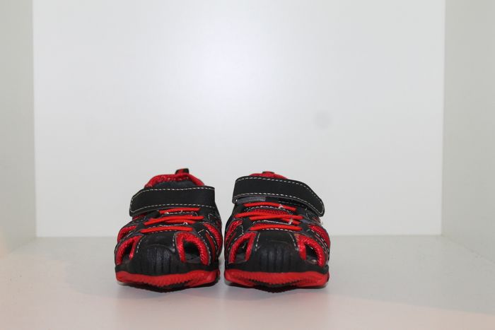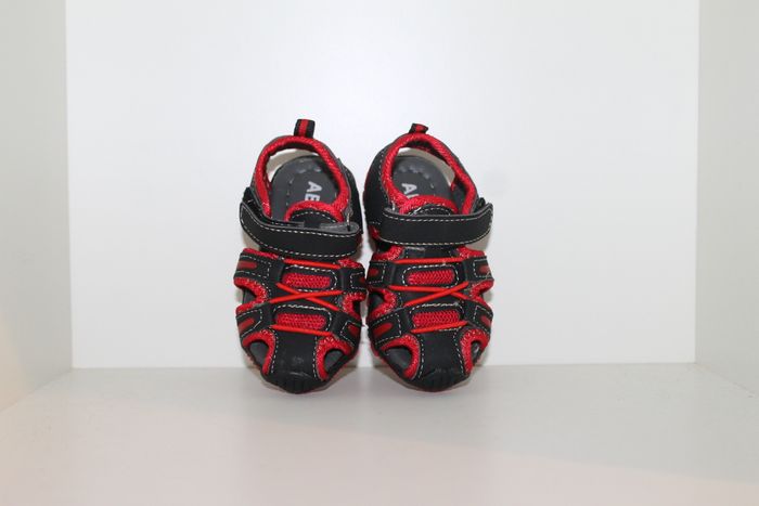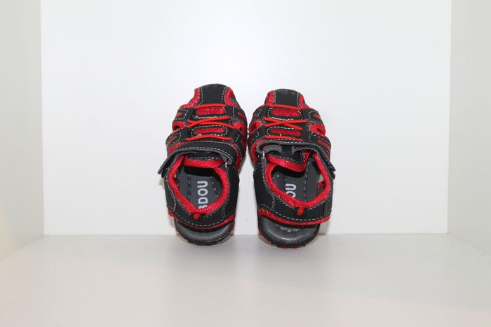 sandales nus pieds rouge et noir pointure 21 neuves dans boites,model avec 2 velcros pour un serrage au plus juste et fermer au bout pour éviter que les doigts de pieds de dépassent.dimensions semelle intérieur 13 cm en mesurant au milieu de la semelle devant et derrière. marque abdou réf 0197 n'hésitez pas à faire un lot.