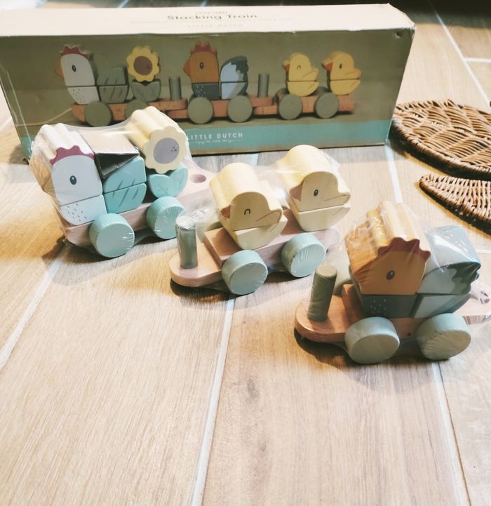 🐤Train en bois Poulet little farm formes/blocs à empiler-encastrer marque Little dutch - photo numéro 1