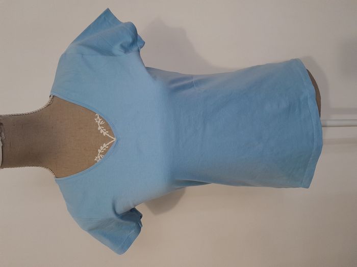 T-shirt, manche courte, col en V Longueur : 56cm Aiss / Aiss : 43cm Matière : 95 % Coton, 5 % Elasthanne Marque : Zeeman