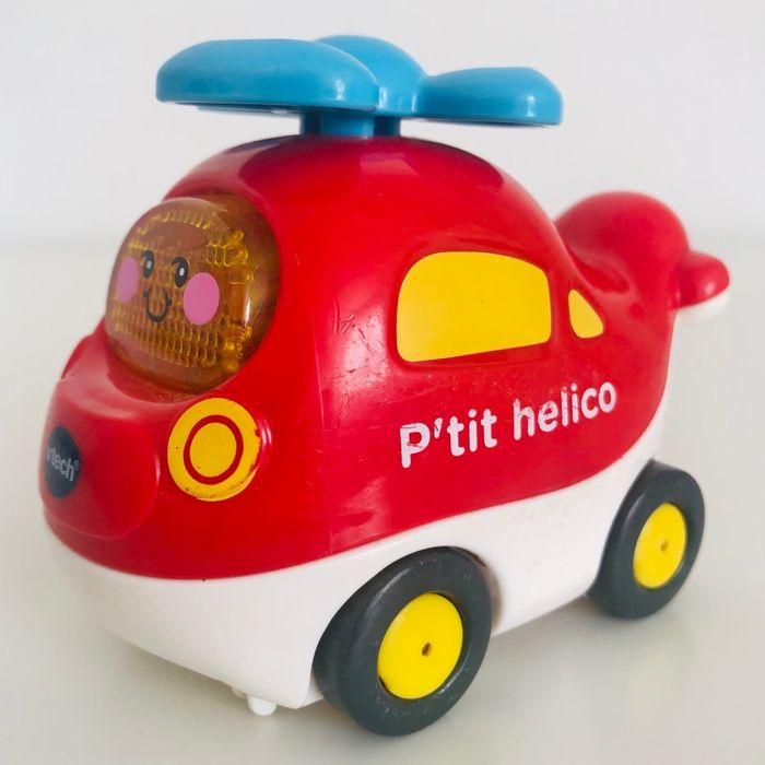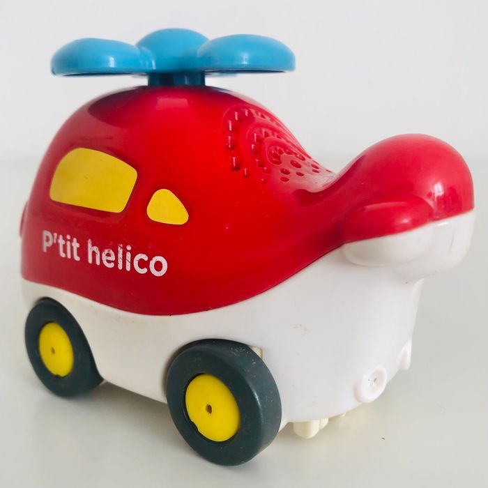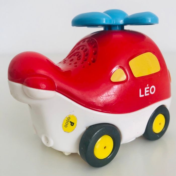 Je vends un véhicule tutut bolide interactif « Léo P’tit hélico ». Traces d’usure. Musique, sons et lumière. Piles non fournies.