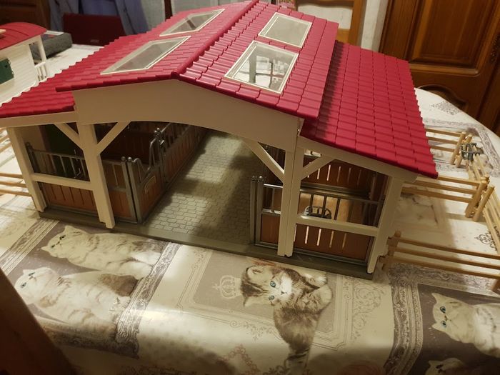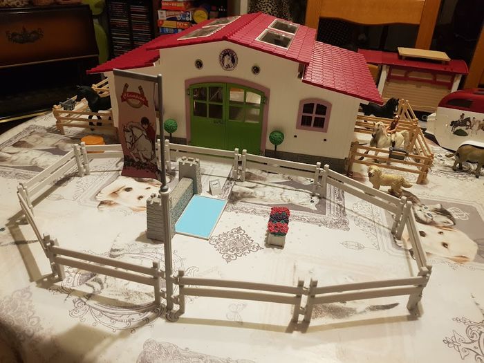 Superbe centre équestre écurie chevaux + clôture + van + enclos + caravane roulotte Schleich - photo numéro 1