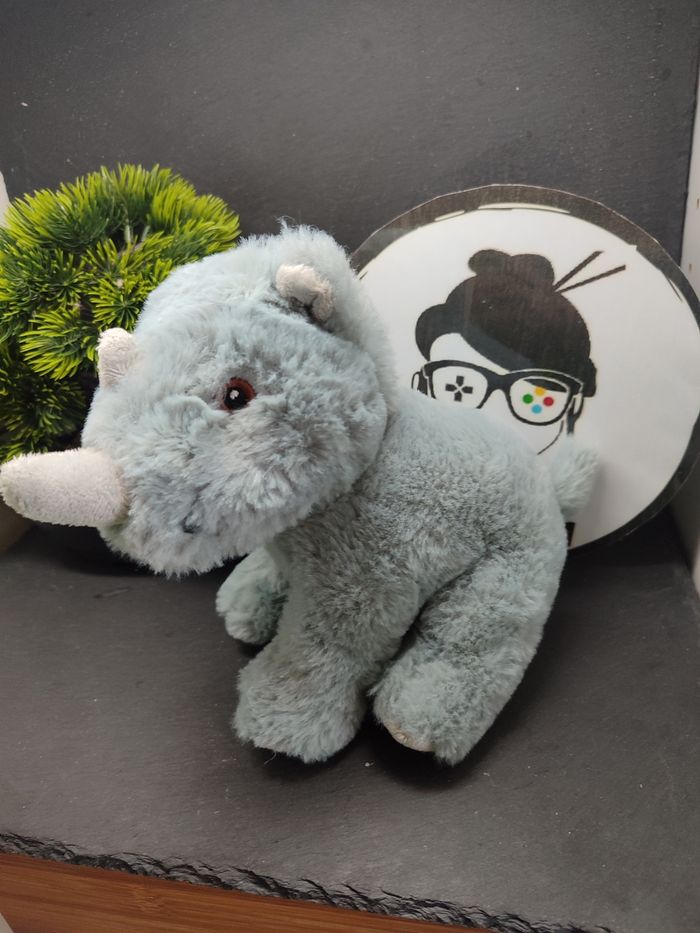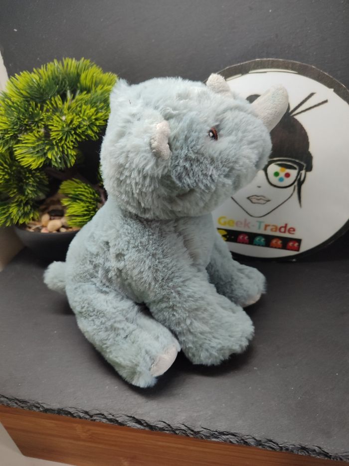 PE0257 doudou peluche nature planet re-pets rhinocéros gris blanc  - photo numéro 1