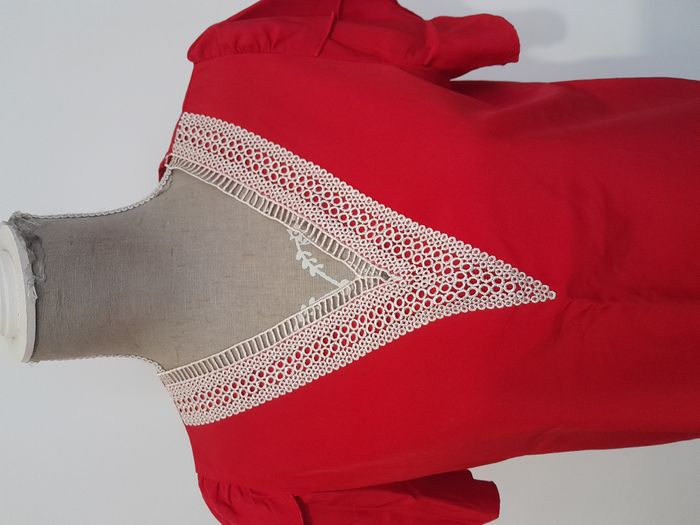T-shirt, col tunisien, manche courte avec volant Longueur : 57cm Aiss / Aiss : 49cm Matière : 100 % Polyester Marque : sans étiquette