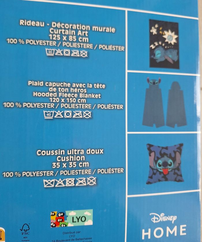 Ensemble pour décorer ta chambre avec ton héros Disney stitch Comprend un rideau, un plaid capuche, un coussin Boite jamais ouverte