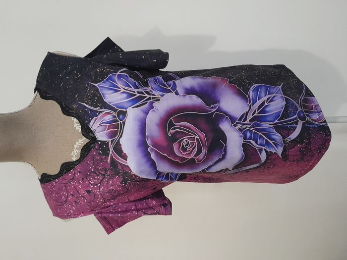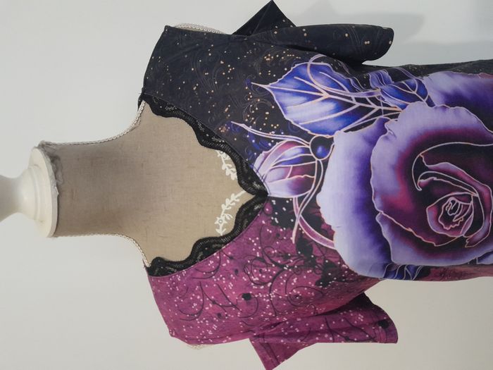 T-shirt, imprimé grosse rose , épaule ajouré, dentelle sur le col en V Longueur : 66cm Aiss / Aiss : 50cm Matière : 100 % Polyester Marque : sans étiquette