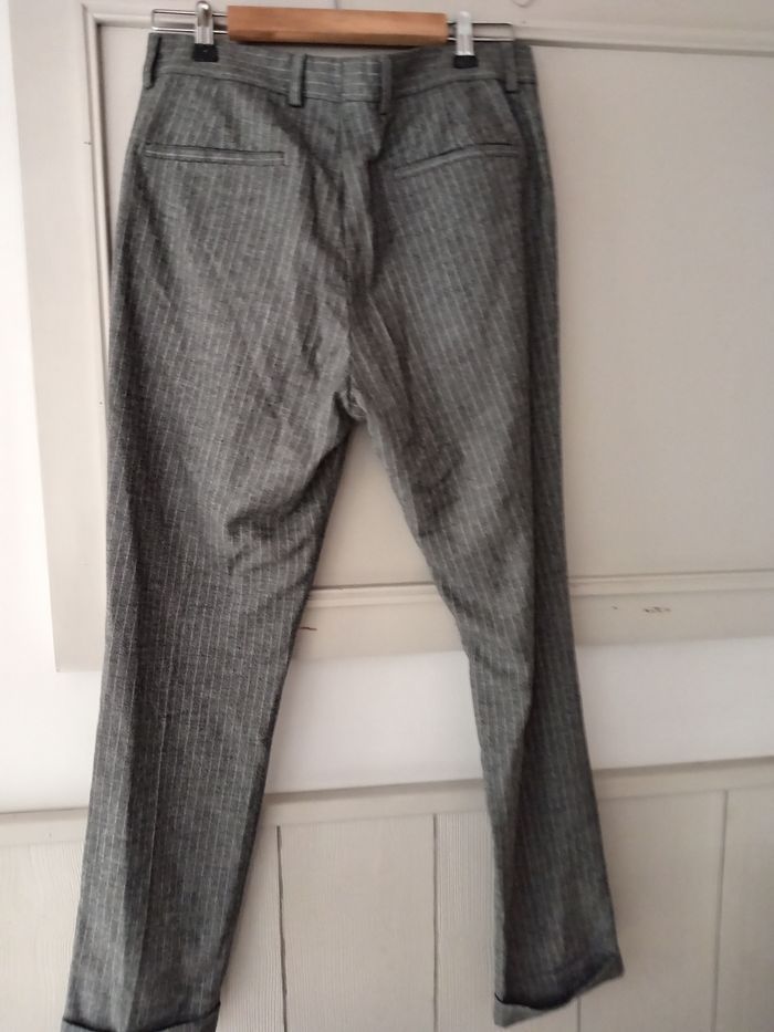 Pantalon gris à rayure blanche slim taille 40.