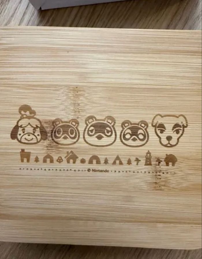 Produit officiel Nintendo du jeu Switch Animal Crossing. Récipient de conservation type lunch box en verre épais avec personnages du jeu gravés sur le couvercle en bois. Très bonne qualité. Envoi rapide et soigné, ou à récupérer sur place à Paris 3. D’autres articles JV sur mon profil. Lot possible