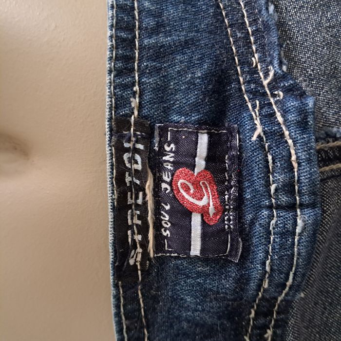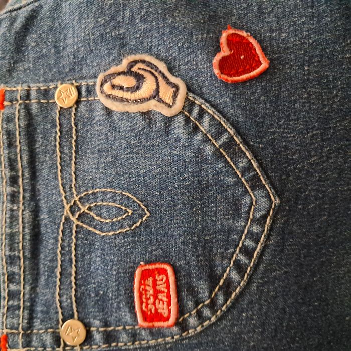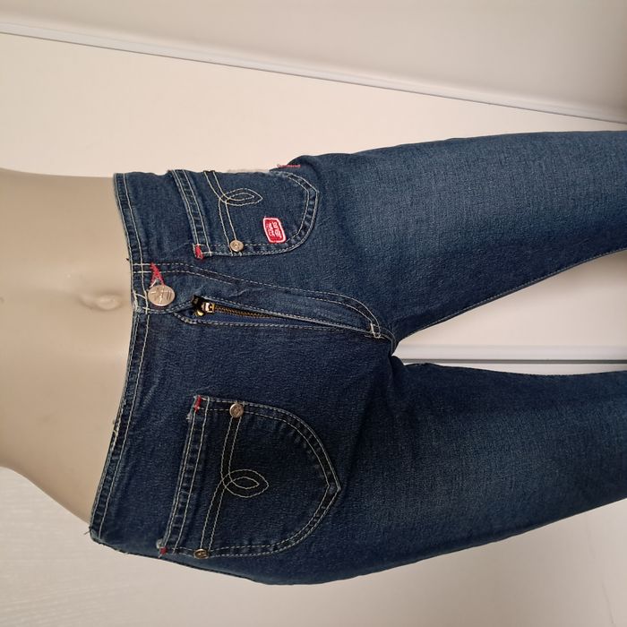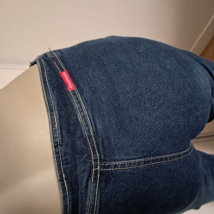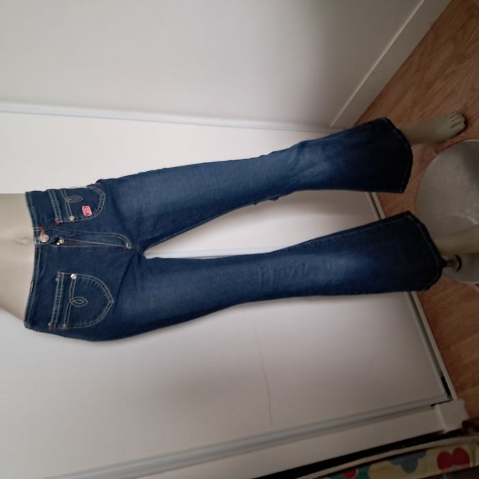 Jeans évasé patte d'eph bleu strech 2 poches devant 1 bouton + fermeture éclair 3 écussons sur la poche Complices Vintage Marqué Taille 14 convient à une Taille 34/36 Mesures à plat Longueur : 99 cm Taille : 34 cm Taille à l’entrejambe : 23 cm Entrejambe au bas : 75 cm Largeur évasé : 26 cm Poids : 480 grammes Matière : 96% coton 4% élasthanne Très bon état