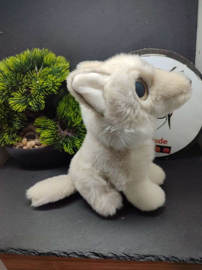 PE0143 Peluche Doudou  loup blanc Petjes worls paillette blanc crème gris Doré  - photo numéro 2