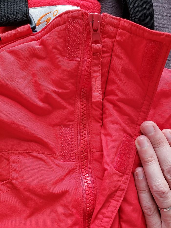 Salopette de montagne rouge pour bébé de 3 ans. Très bon état. Mixte. Zippée sur le devant. Bretelles réglables. Marque : Go Sport.