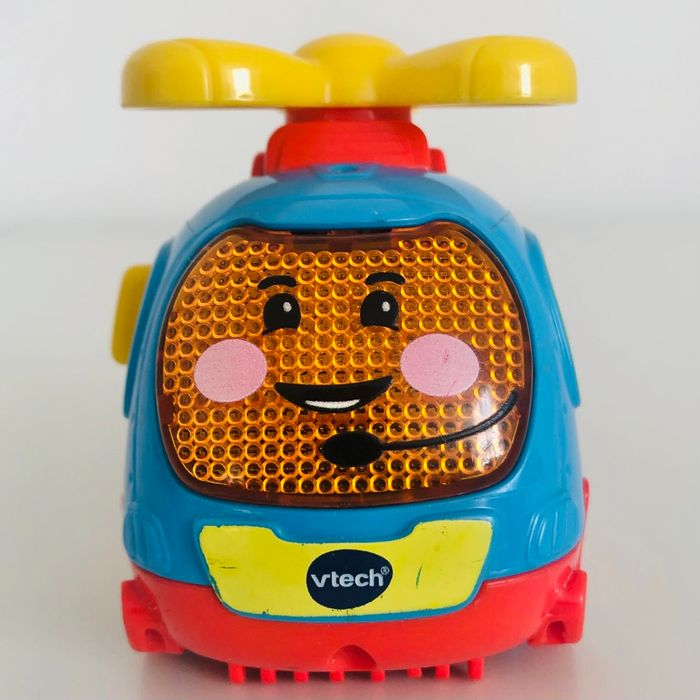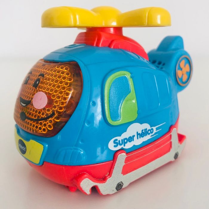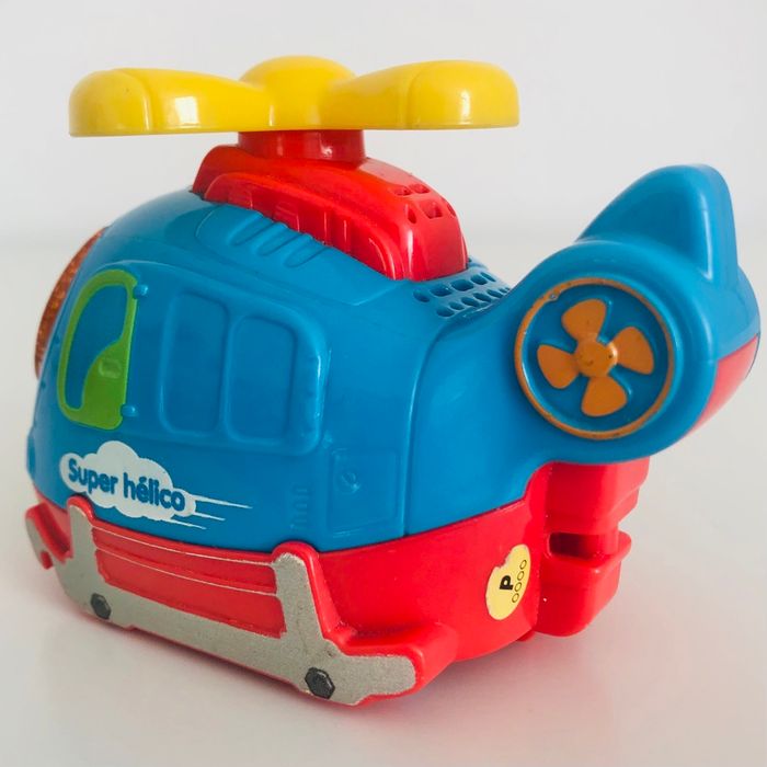 Je vends un véhicule interactif tutut bolide « Super Hélico », en très bon état excepté la peinture qui est un peu effacée à l’avant (voir 5eme photo). Lorsqu’on appuie sur le bouton sur le côté, l’hélice tourne. Musique, sons et lumière. Piles non fournies.