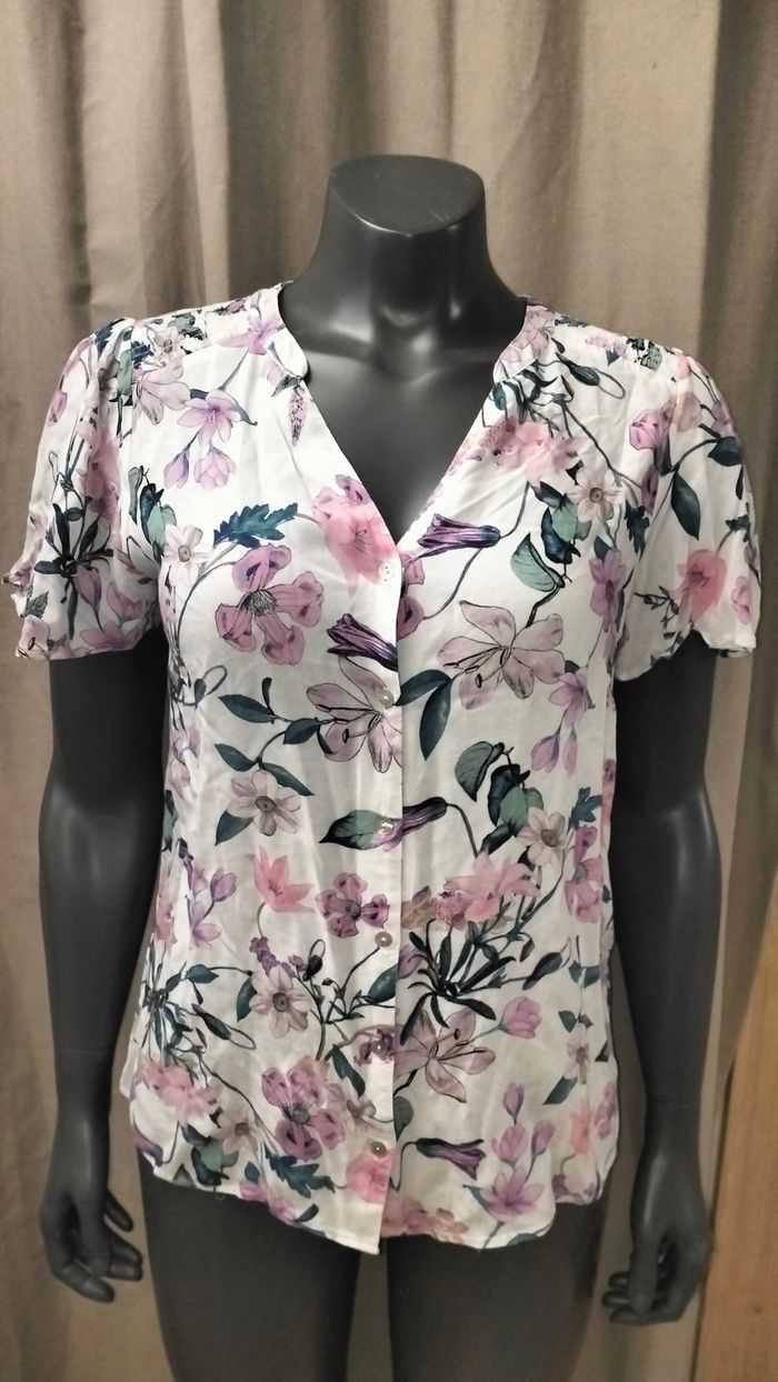 Chemisier imprimé fleuri, légèrement transparent Taille 1 / S Marque Armand Thiery Très bon état