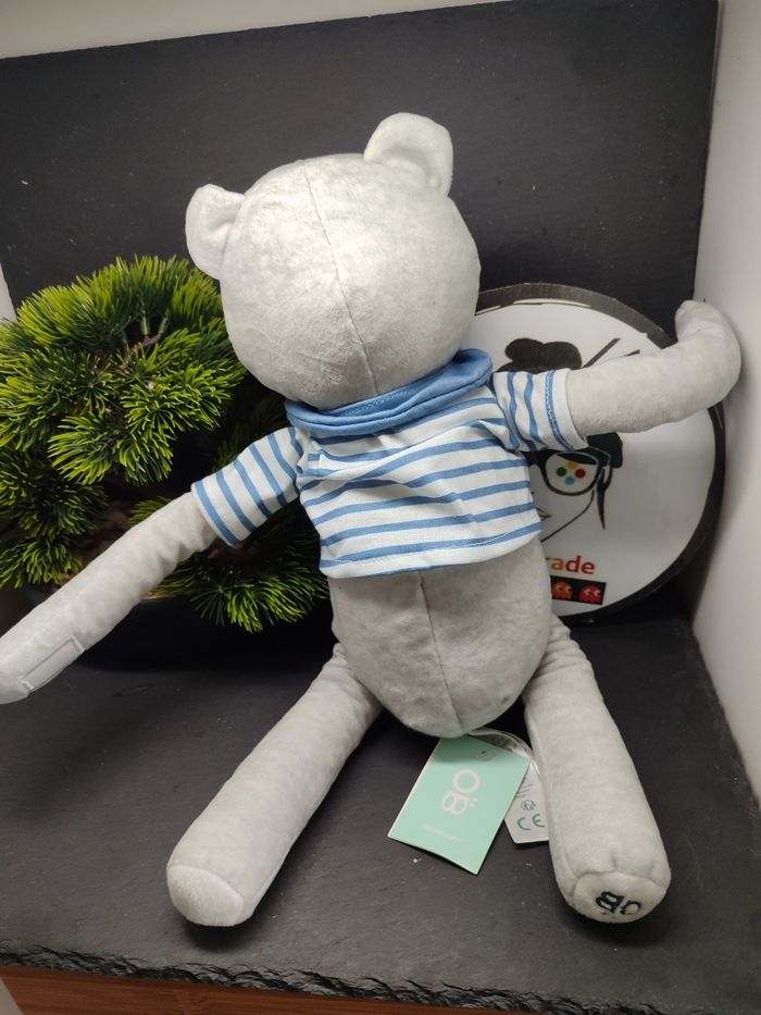 Doudou Hippopotame gris T-shirt rayé bleu blanc obaibi okaidi peluche Pantin  - photo numéro 2