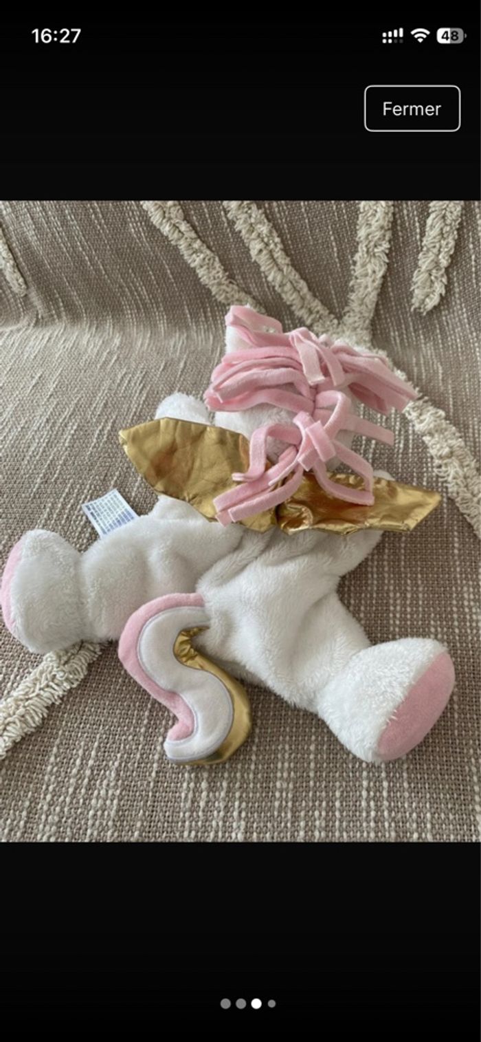 Peluche doudou marionnette Simba toys  licorne blanc rose et doré parfait état - photo numéro 4