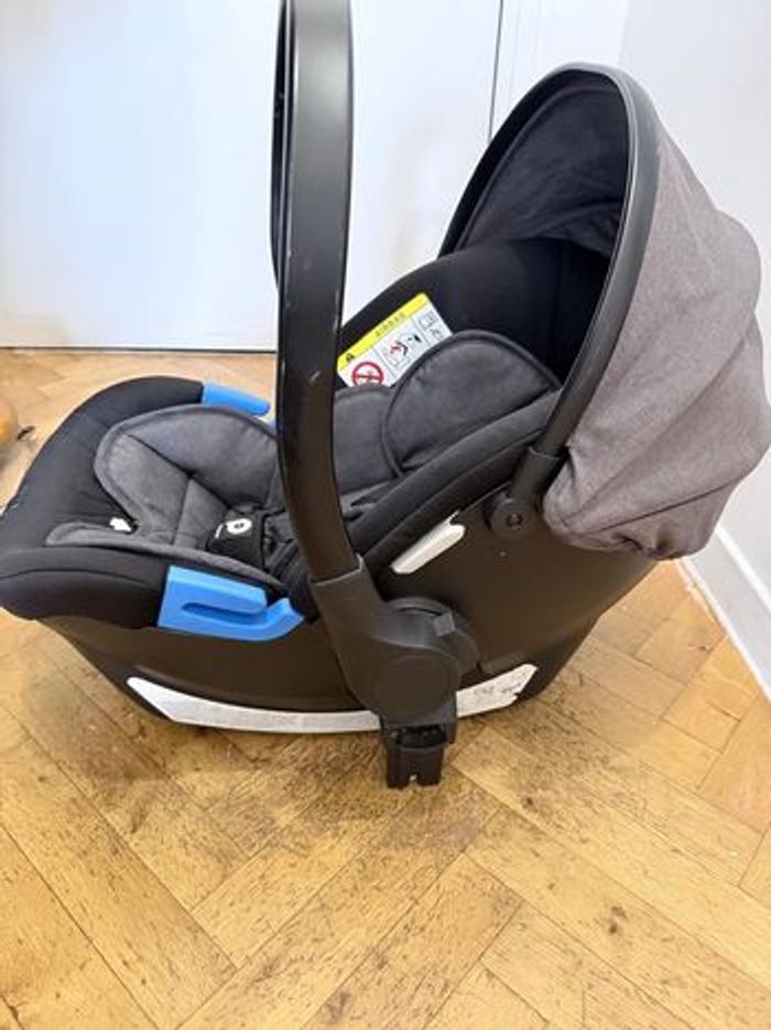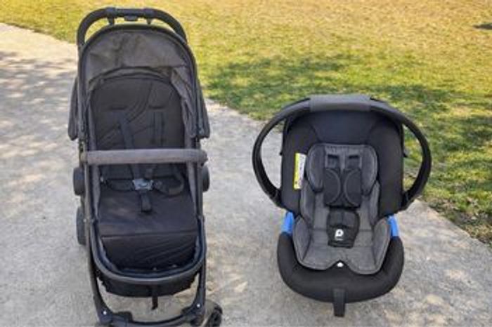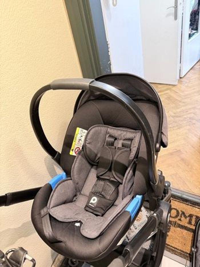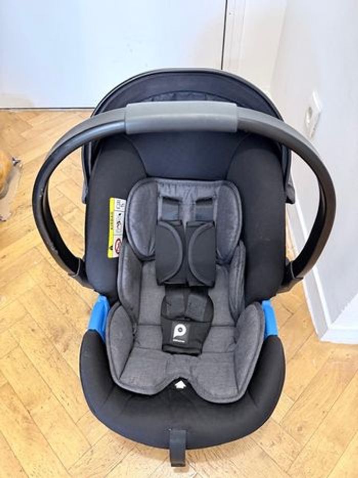 Système de voyage bébé Prema 2-en-1 – Poussette & siège auto pour nourrisson (Noir/Gris) Vous recherchez un système de voyage élégant, sûr et polyvalent ? Cet ensemble premaman 2-en-1 est en excellent état et prêt à accueillir une nouvelle famille. Il est conçu pour accompagner votre bébé dès la naissance et jusqu’à la petite enfance. Contenu inclus : 1. Poussette modulable grand format : équipée d’un siège réversible permettant à bébé d’être face aux parents ou face à la route. 2. Siège auto pour nourrisson : léger et sécurisé, conçu pour un passage facile de la voiture au châssis de la poussette. Caractéristiques principales : • 🏆 Polyvalence 2-en-1 : le siège de la poussette est réglable sur plusieurs positions d’inclinaison, dont une position quasi allongée idéale pour les siestes. • 🛡️ Sécurité avant tout : la poussette et le siège auto sont équipés d’un harnais de sécurité à 5 points avec protections rembourrées pour un confort optimal. • ☀️ Protection par tous les temps : grande capote extensible sur la poussette pour protéger du soleil et du vent, avec une capote assortie sur le siège auto. • 🛋️ Confort premium : tissu gris chiné doux et respirant, à la fois résistant et facile à nettoyer. • 🚀 Conduite fluide : grandes roues et châssis robuste pour une maniabilité optimale sur trottoirs, pelouse ou gravier. • 📦 Rangement & praticité : grand panier de rangement sous le siège pour sacs à langer et courses. La poussette se plie de manière compacte pour un rangement facile dans le coffre de la voiture.
