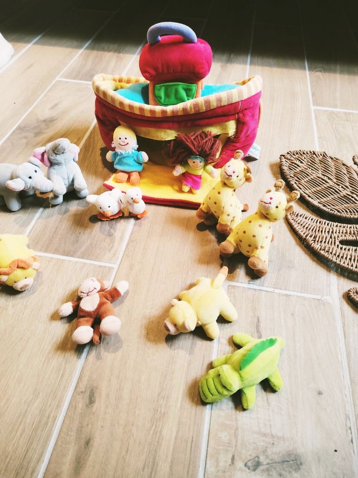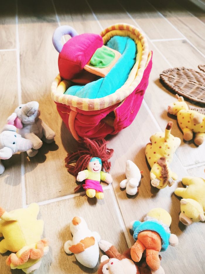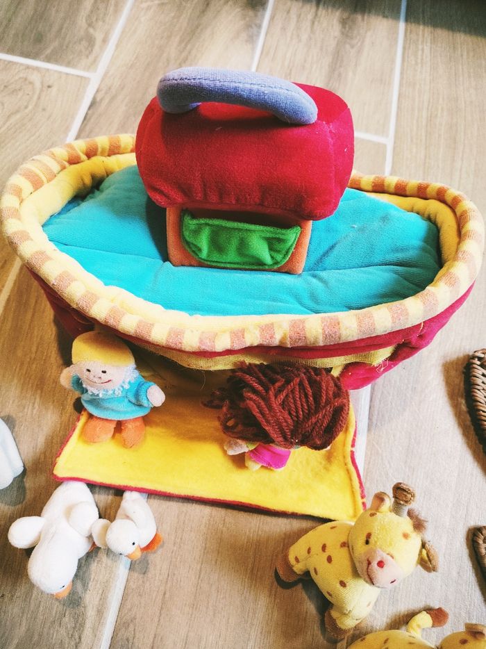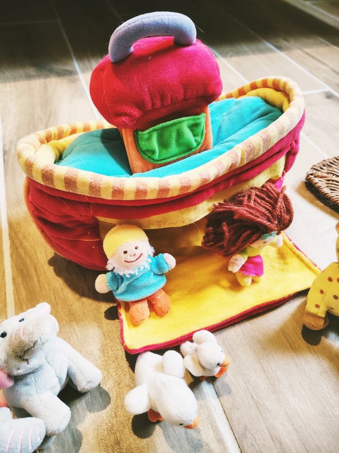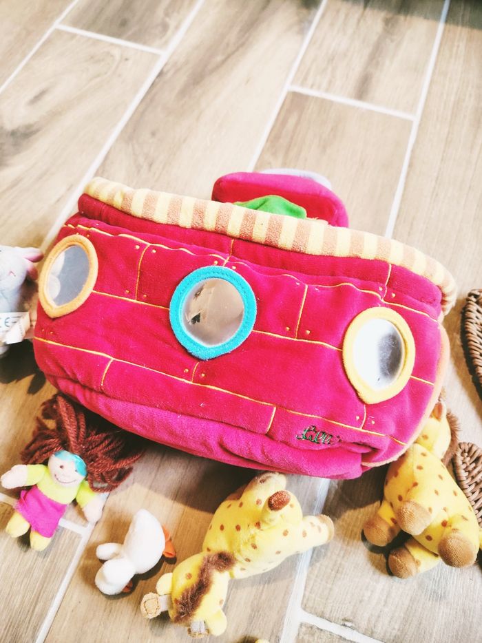 🦁Jouet en peluche - L'Arche de Noé avec animaux et personnages marque Lilliputiens 🎀Convient dès l'âge de 18 mois 🎀Dimensions 32 x 18 x12 cm environ 🎀Lavable en machine 🎀Cette jolie Arche est fournie avec 13 peluches animaux et personnages : ✨Noé et Naama ✨2 crocodiles ✨1 lion et 1 lionne ✨2 girafes ✨2 éléphants ✨2 oiseaux ✨1 singe 🎀Ce Jouet comporte également une poignée pour être transporter facilement, d'une fermeture par scratch ainsi que 3 miroirs. 🎀Votre enfant pourra laisser place à son imagination et créer de belles histoire avec cette arche tout en tissu. 🎀Comporte quelques défauts ✨Micro rayures sur les miroirs et légère décoloration sur les rayures de devant ❇️N'hésitez pas à créer un lot pour économiser sur les frais de port❇️ Premier âge, Jouet bébé, Jouet d'activité, Jouet ludique, Jouet eveil, Mémorisation, Memoire, aptitude, motricité, jeu Adresse, Montessori, jeu bois, Jouet bois, Jouet vintage, Jeu adresse, jeu apprentissage, dextérité, jeu sensorielle, jeu educatif, activités et Jouet pour bébé, trier empiler, encastrer, jeux et jouets