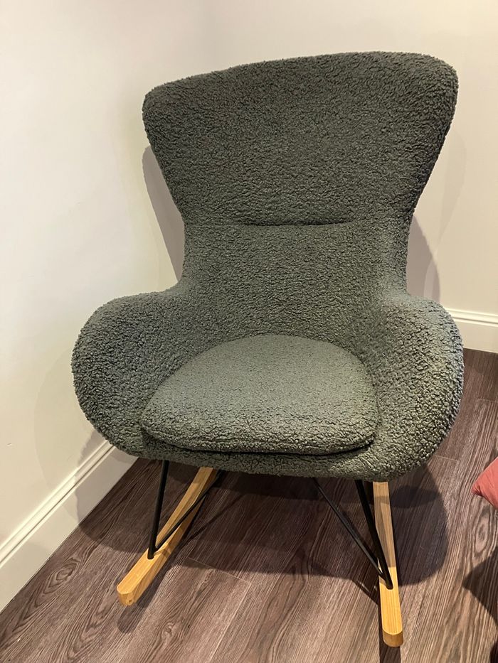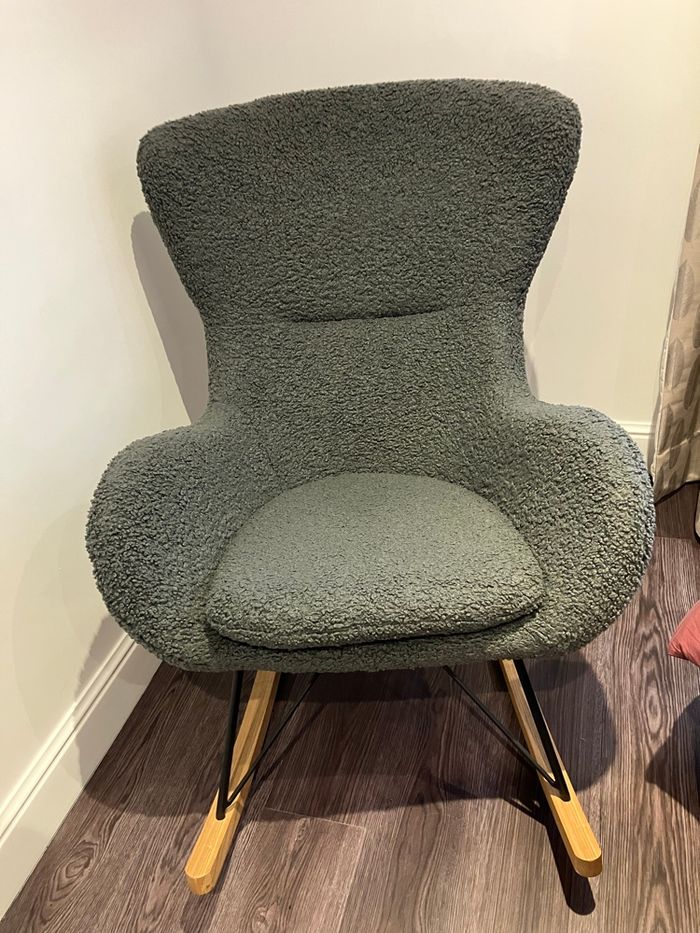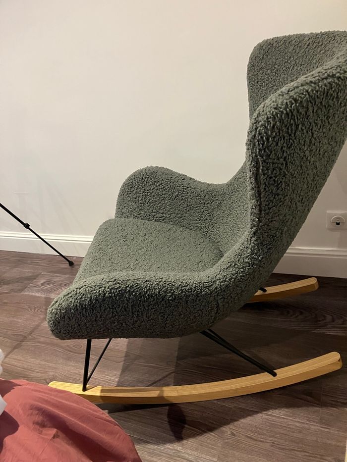 Je vends ce fauteuil à bascule scandinave en tissu effet laine de mouton bouclée gris . - Type de produit : Fauteuil à bascule -Matériau : Tissu effet laine de mouton bouclée - Couleur : gris - Style : Scandinave - Piètement : Bois clair Très bon état utilisé seulement dans la chambre de mon bébé lors de l’allaitement Très bon état acheté 530 euros Dimensions totales : L77 x P107 x H100 cm Dimensions assise : L51 x P48 x H50 cm Dimensions dossier : L72 x H76 Hauteur accoudoirs : 22 cm Seulement Remise en main propre maisons laffitte 78600 N'hésitez pas à me contacter pour plus d'informations ou de photos.