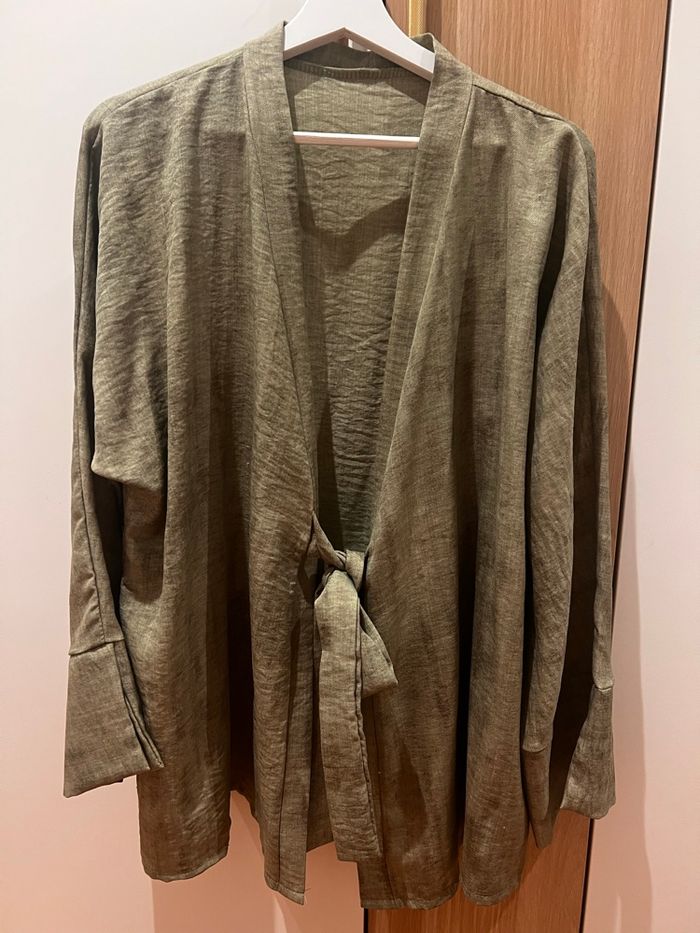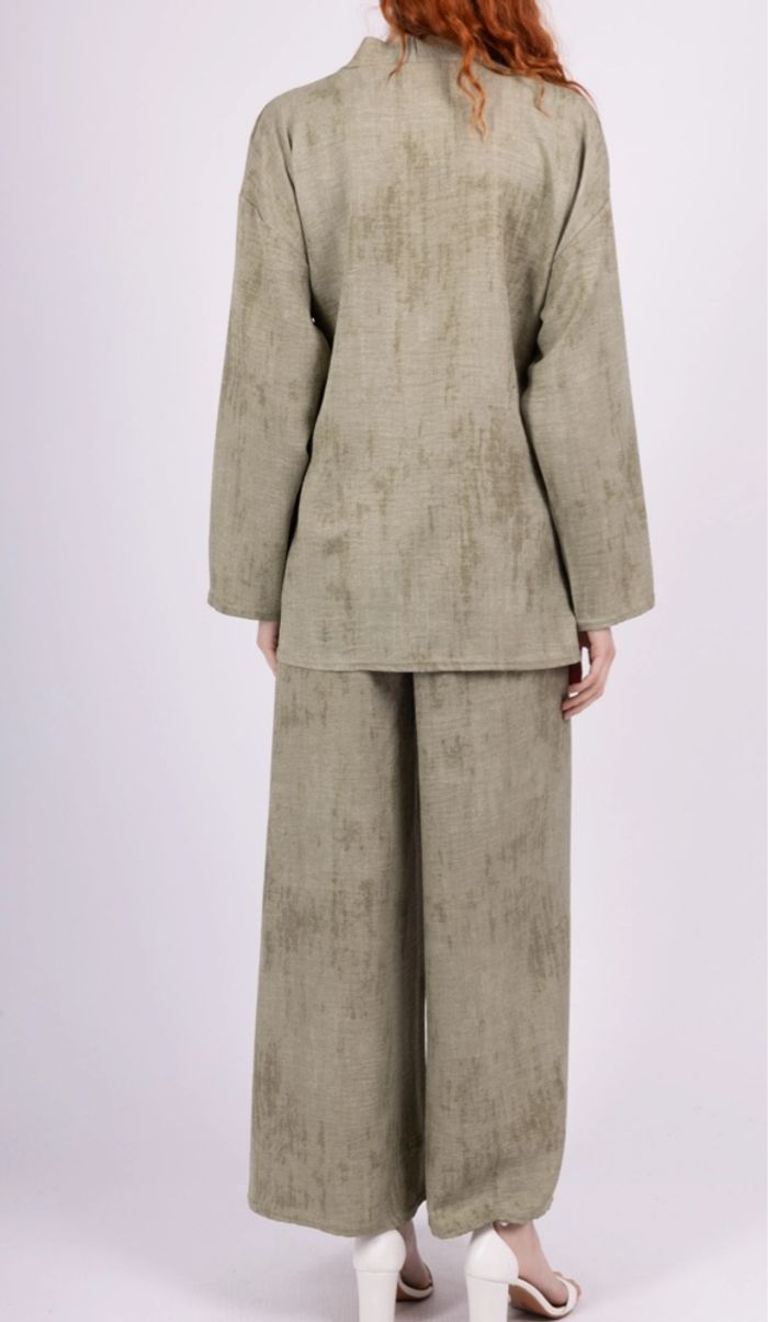 Ensemble kimono cache cœur et pantalon effet lin 100% polyester, idéal pour le printemps, fabriqué en Italie