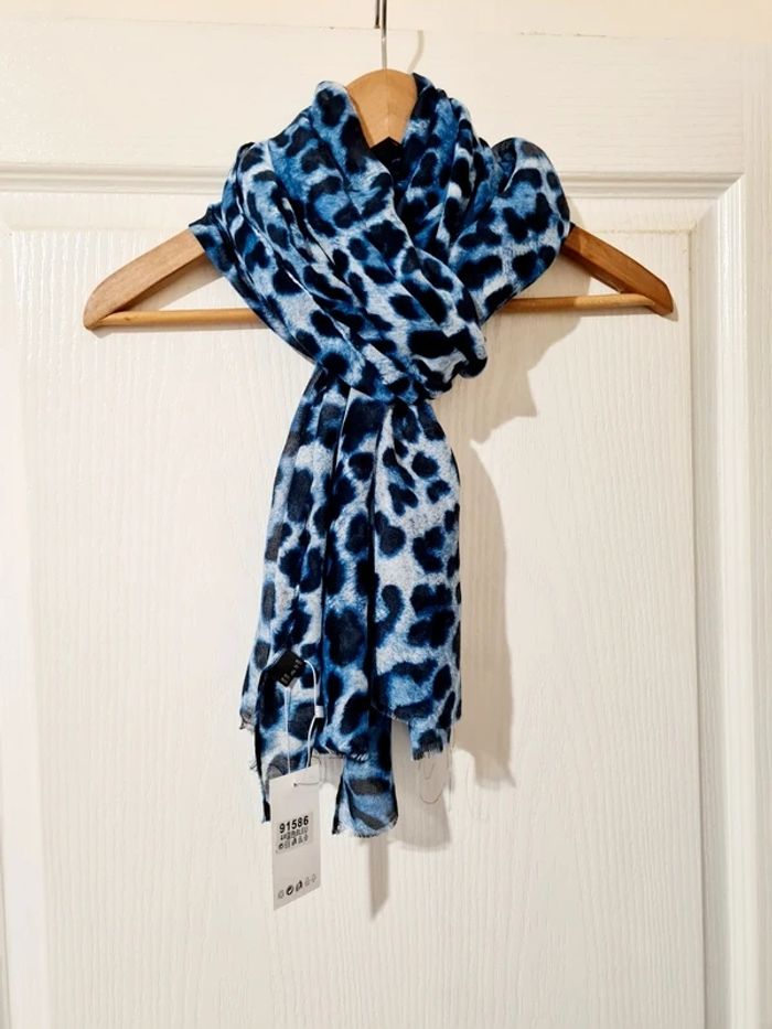 Foulard léopard neuf avec étiquette couleur bleu doux et soyeux dans son emballage Dimensions : 180 × 85 cm 80% viscose / 20 % coton #foulard #léopard #foulardfemme #mode #tendance #accessoire #tendances #accessoires #foulardléopard