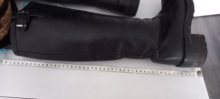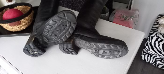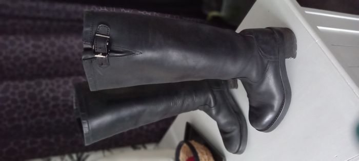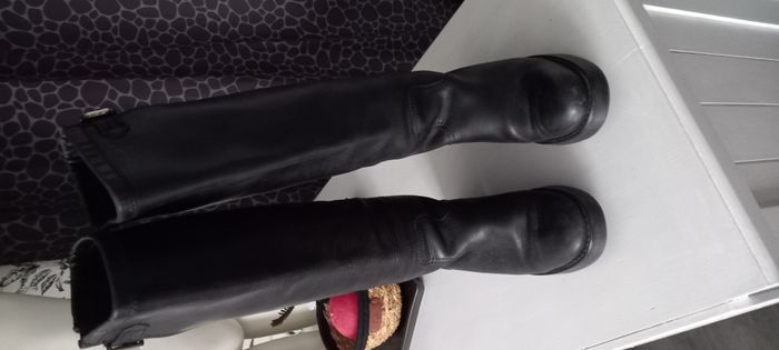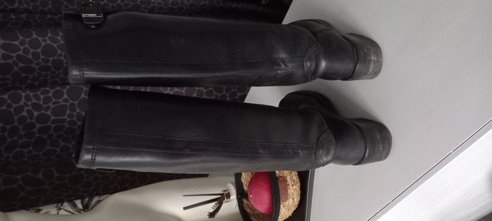 Bottes Free Lance vintage Excellent état Cuir noir Sans fermeture Hauteur 46 cm Talon 6 cm Pointure 37 #chaussures_imoddeco