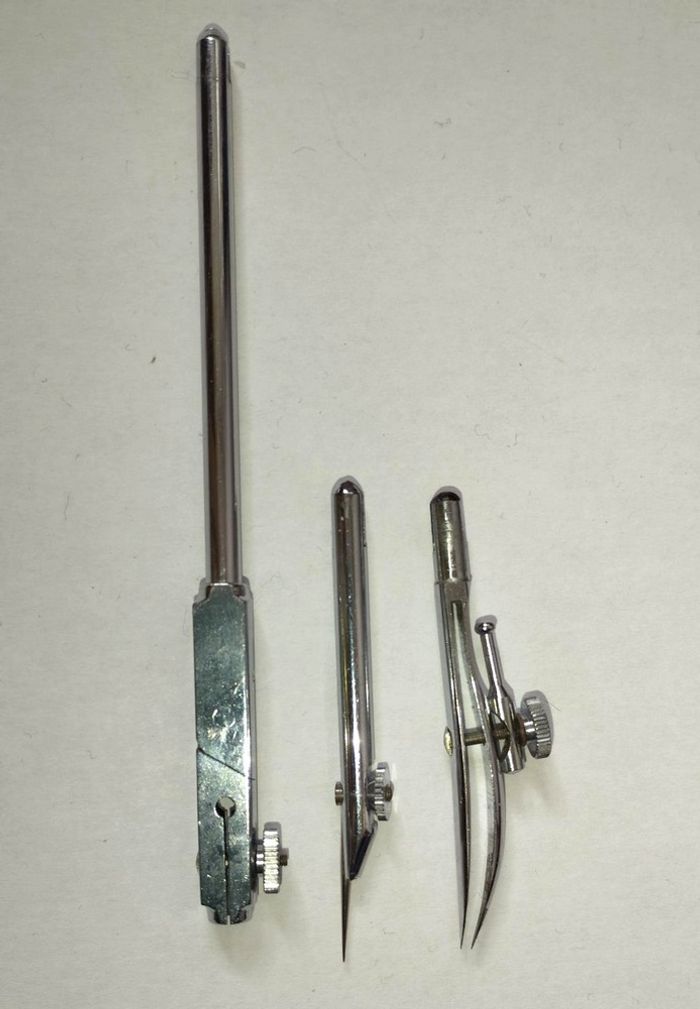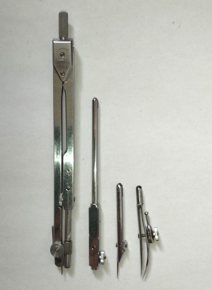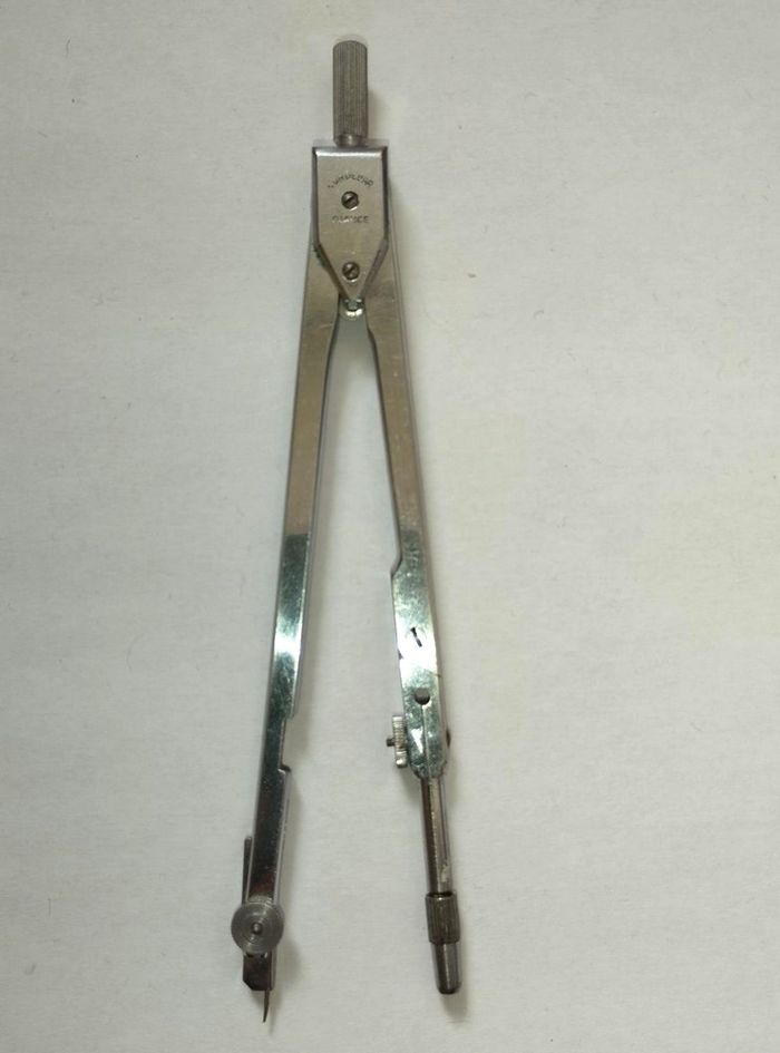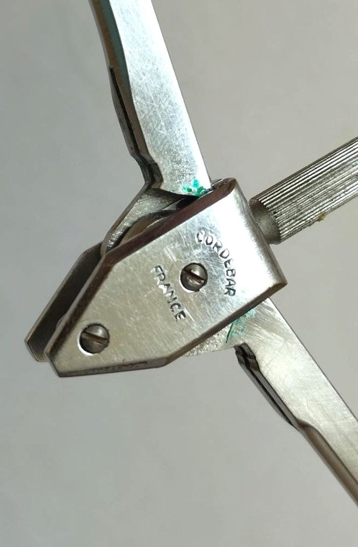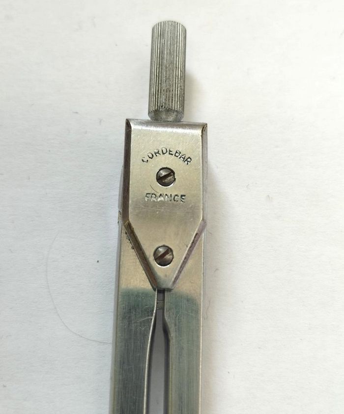 Compas ancien de marque Cordebar en métal argenté vintage avec accessoires interchangeables Légères traces d'oxydation