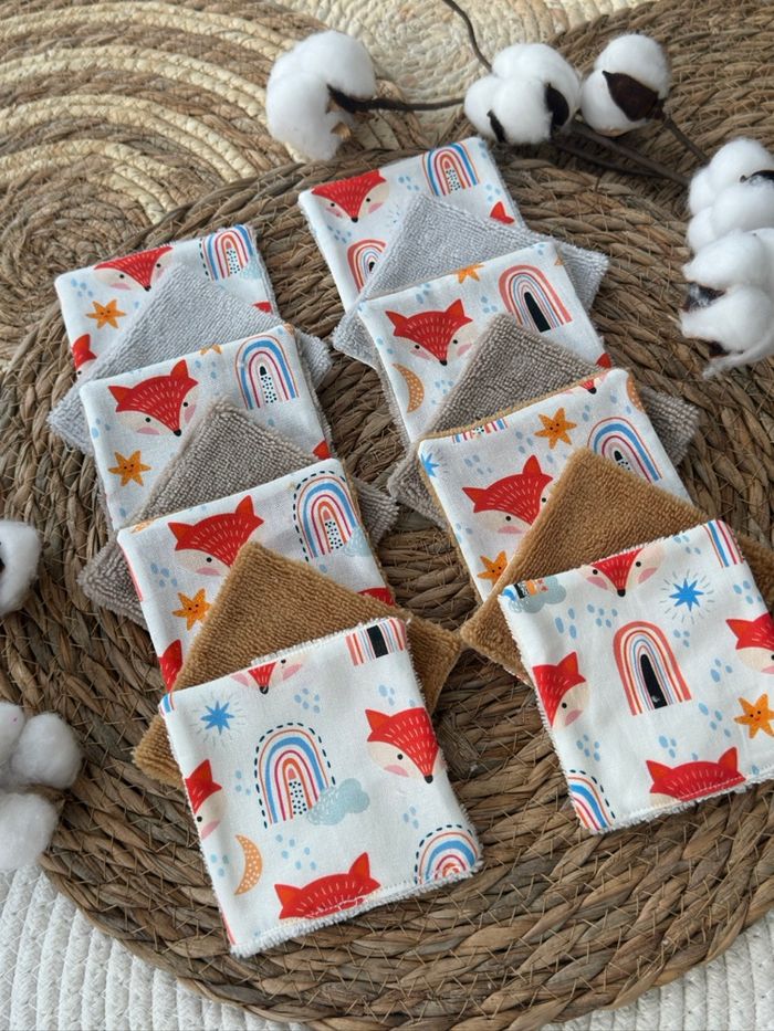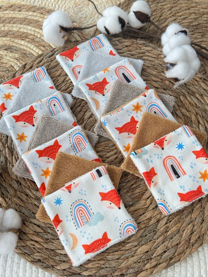 Lingettes lavable motif renard lot de 14 en éponge bambou  - photo numéro 1