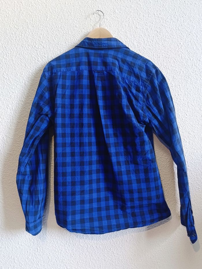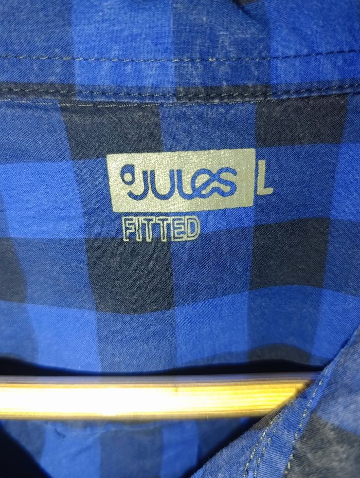 Chemise Jules bleu motif à carreaux noir, pour homme. Coupe Slim, taille petit. 100% coton. Taille M/L