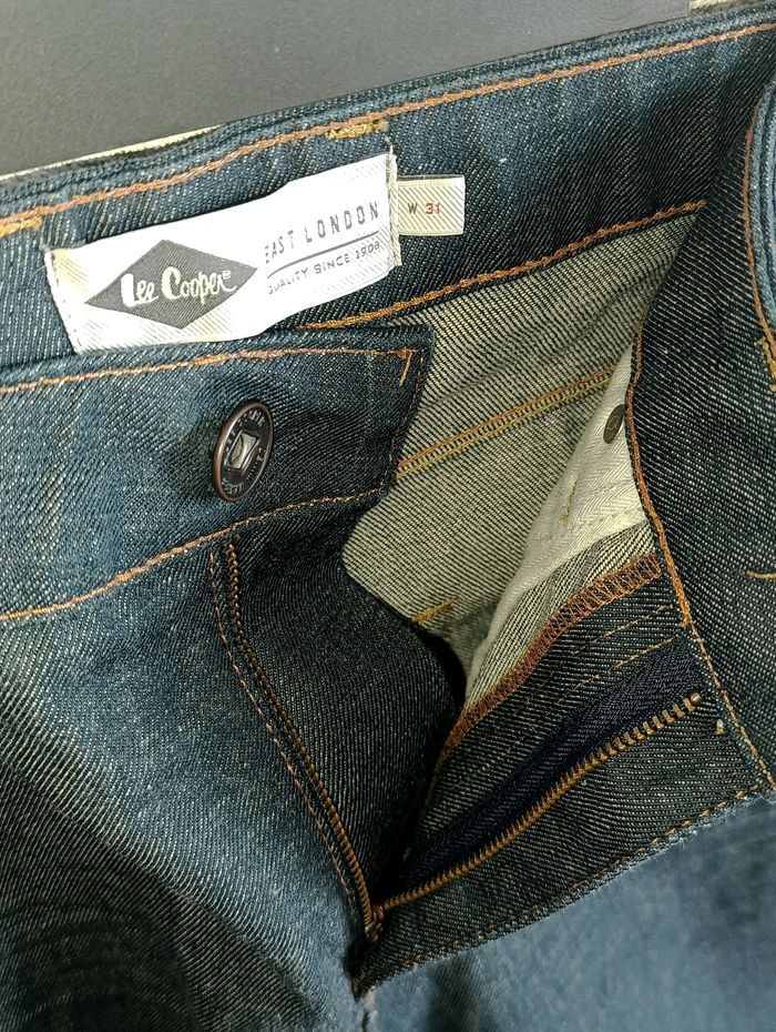 Short jean brut selvedge, de la marque Lee Cooper. Neuf avec étiquette, jamais porté. Coupe slim. 100% coton. Taille W31.
