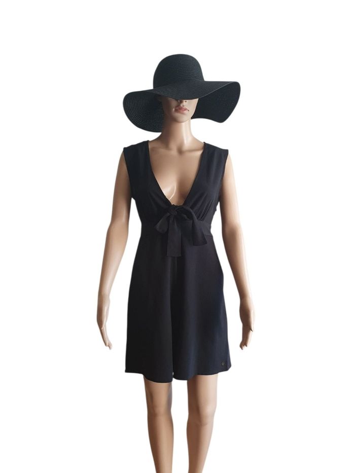 Sublimez votre allure estivale avec cette combishort Kaporal,  une pièce qui allie parfaitement élégance et décontraction.  Sa coupe fluide et ses détails travaillés en font un indispensable de la garde robe, aussi bien pour une journée ensoleillée que pour une soirée habillée.  🖤 Décolleté en V plongeant agrémenté d'un nœud à nouer sur le devant pour un effet féminin et personnalisé.  ❤️ Dos Spectaculaire : un dos ouvert sublimé par une large bande de dentelle florale délicate pour un look bohème-chic irrésistible.  💜 La taille est elastiquée au dos pour s'adapter parfaitement à votre morphologie tout en marquant joliment la silhouette.   💛 On retrouve le petit logo métallique discret de la marque sur le bas du short, gage d'authenticité et de finitions Soignées.  📏 Marque : Kaporal  Taille S (36) Couleur : Noir Profond  Tissu fluide et léger,  très agréable à porter  🌟 Très bon état  💡 Suggestion look: Portez-la avec des sandales compensées et un grand chapeau de paille pour un look "Riviera" ou avec des baskets blanches pour une touche plus urbaine.