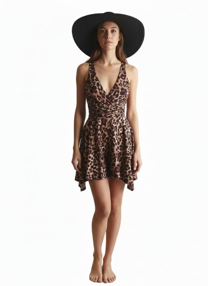Magnifique Combi-Short Fluide-Coupe Pyramidale & Imprimé Léopard - photo numéro 1