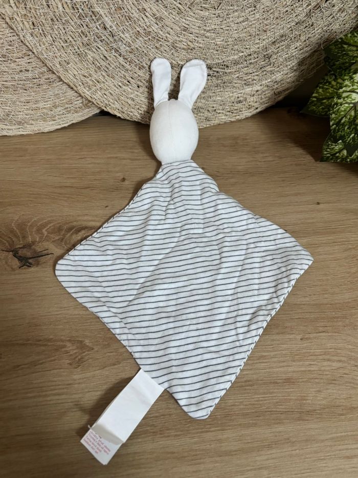 Doudou plat lapin blanc rayé obaibi  - photo numéro 1