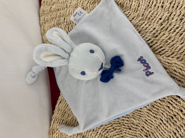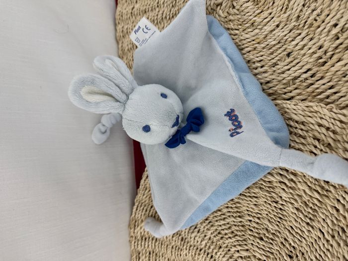 doudou plat blanc bleu noeuds aux 4 coins LAPIN PICOT  - photo numéro 1