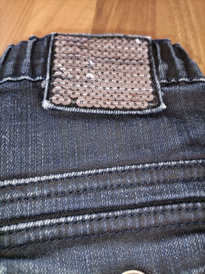 Pantalon jean bleu marine à strass 6 ans 3 pommes - photo numéro 9