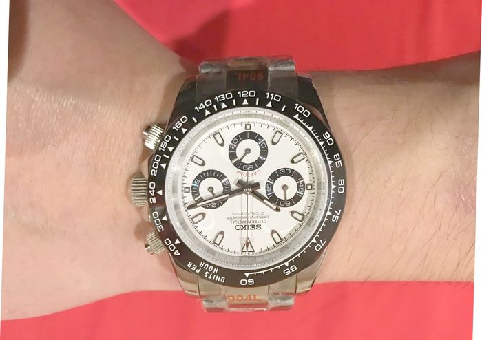✅NeUF MAGNIFIQUE MONTRE MARQUE SElKO CHRONOGRAPH BLANC DAYT0NA 40MM VERRE SAPHIR MOUVEMENT SElKO MEC - photo numéro 9