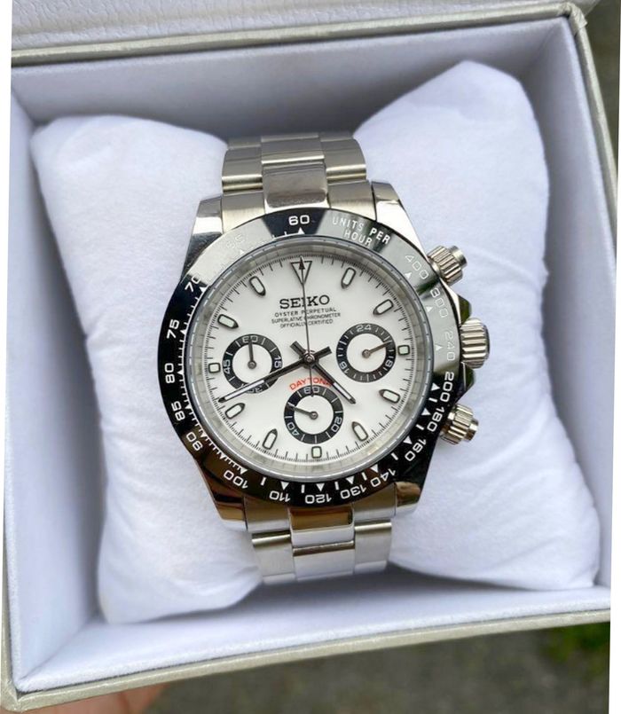 ✅NeUF MAGNIFIQUE MONTRE MARQUE SElKO CHRONOGRAPH BLANC DAYT0NA 40MM VERRE SAPHIR MOUVEMENT SElKO MEC - photo numéro 1
