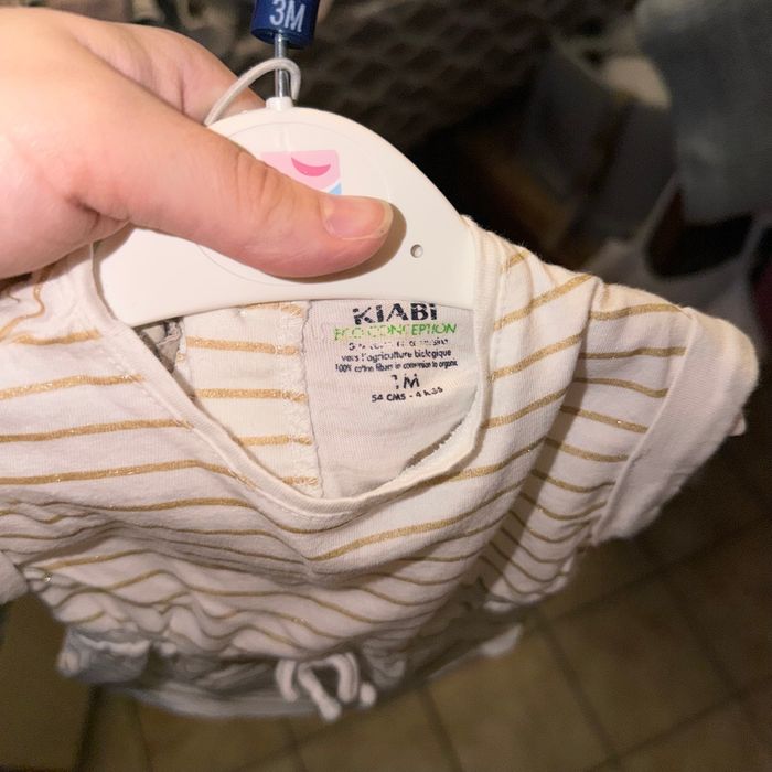 T-shirt manches courtes rayé à paillettes, fille Taille 1 mois Marque Kiabi Très bon état Très peu porté #vetementsfille #tresbonetat #tshirtmanchescourtes #tshirtrayé #paillettes #kiabi