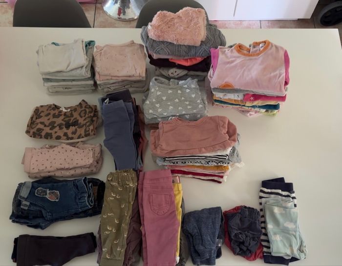 Je vends ce lot vêtements bébé fille taille 1 mois. Tout est en bon état. Le lot contient 84 pièces: -8 pyjamas -4 bas de pyjamas -20 bodys -1 salopette -2 shorts en velours -2 sweats -1 ensemble -7 gilets ( dont 1sans manches et 1 manches courtes) -4 robes - 6 jeggings -2 leggings -3 jeans -9 pantalons -16 tee-shirts manches longues