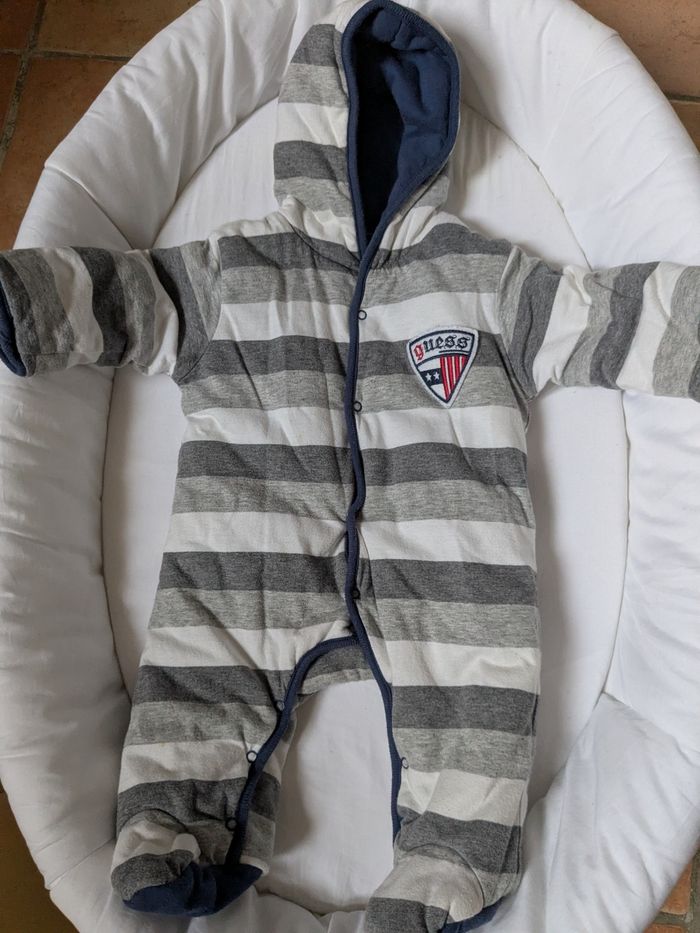 Combipilote 0/3 mois, 100% coton, de marque Guess. Parfait état. Fermeture par pressions.