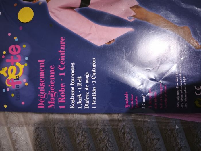 Déguisement fille magicienne 1 robe et 1 ceinture de couleur rose taille 5/7 ajustable a découper soi même