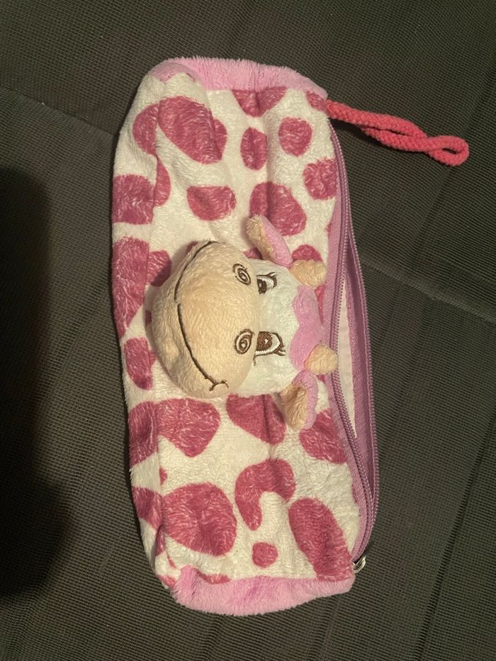 Trousse toute douce avec tête de vache violette