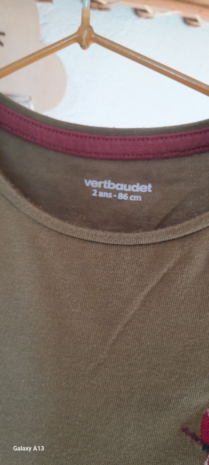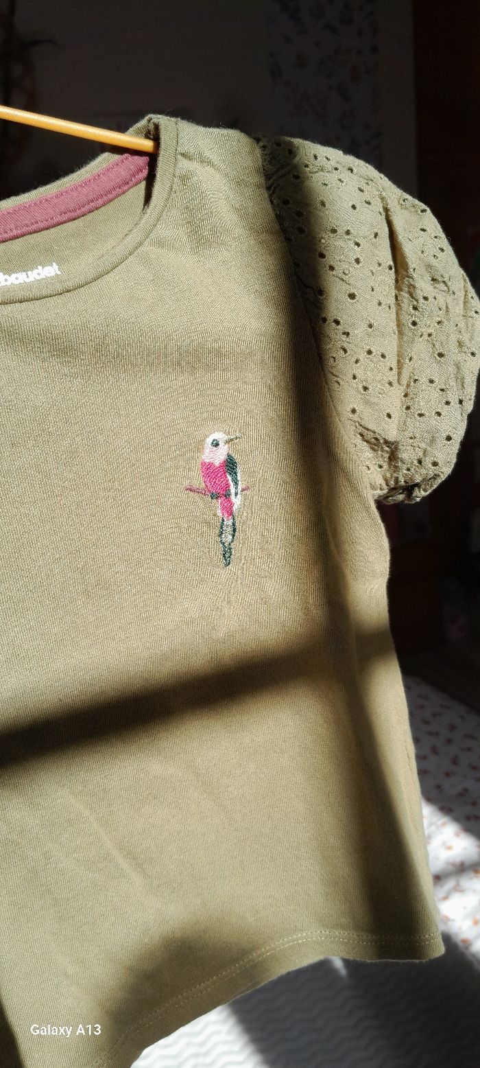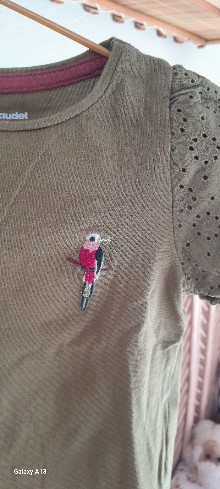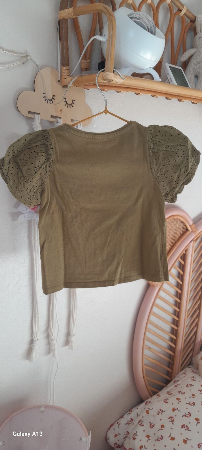 T-shirt à manches courtes bouffantes, couleur kaki, peu porté, en parfait état