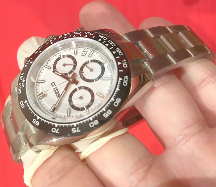 ✅NeUF MAGNIFIQUE MONTRE MARQUE SElKO CHRONOGRAPH BLANC DAYT0NA 40MM VERRE SAPHIR MOUVEMENT SElKO MEC - photo numéro 9