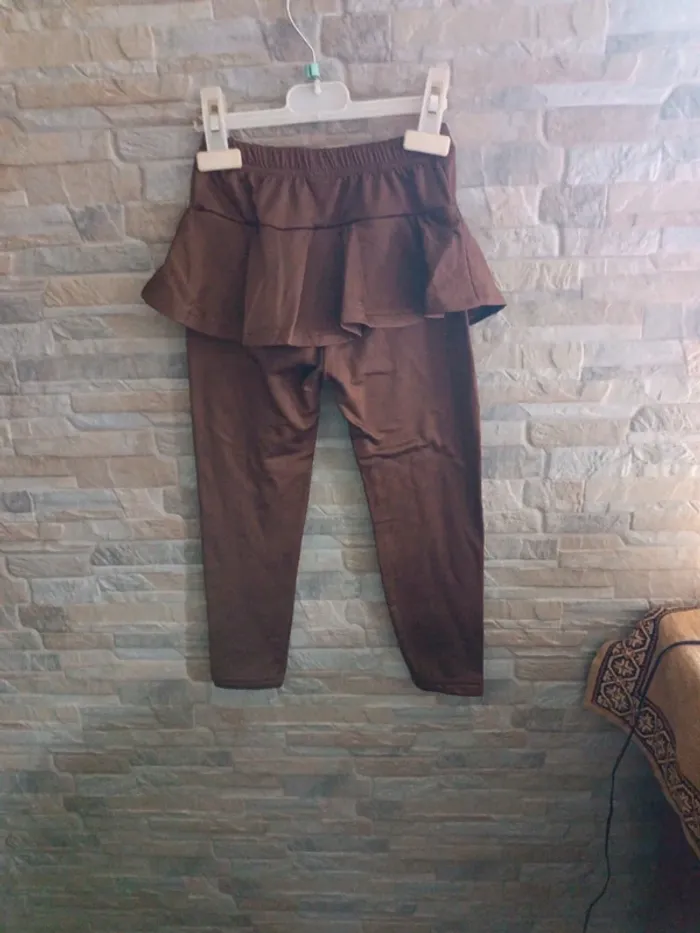 Legging à jupette marron Story-2 5A-110. 95% polyester, 5% élasthanne. Neuf