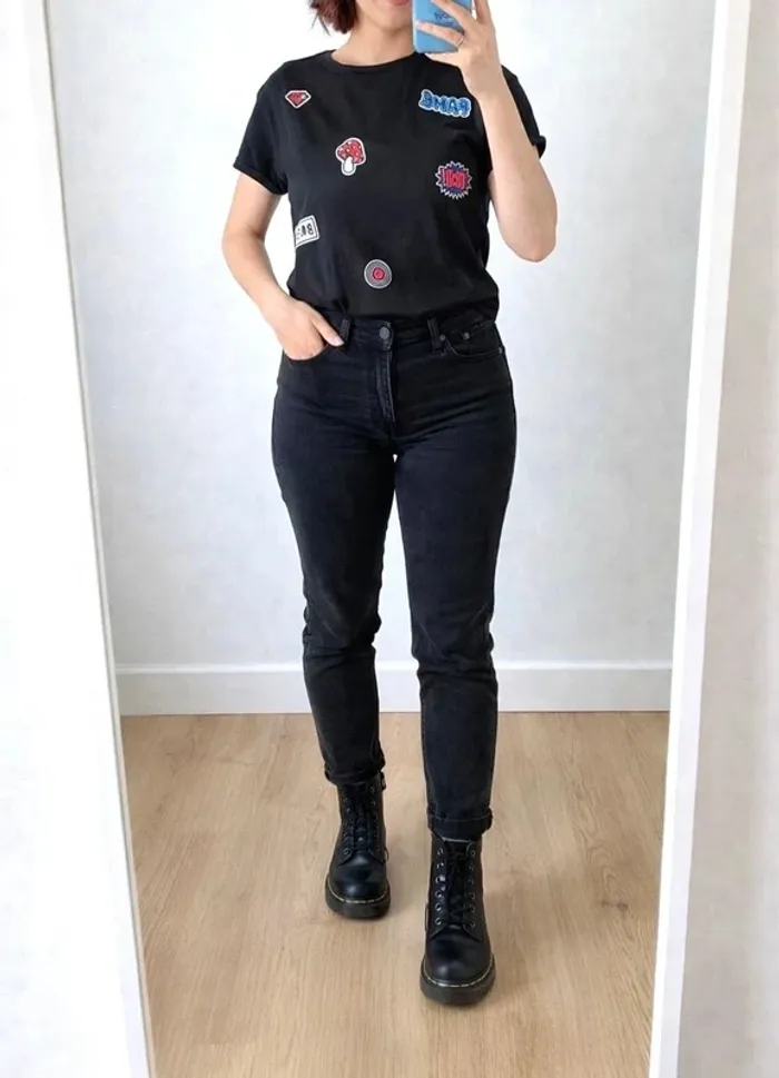 Bonjour à tous ! 😄 🔍 Description : T-shirt noir avec imprimé/stickers. 100% Coton. 🌟 État : neuf 📏 Taille : S 📐 Dimension : largeur 49 CM / longueur 59 CM 🛍️ Marque : Mango 📦 Livraison : chronopost (shop2shop) et mondial relai en priorité pour un envoi rapide. Soigné ✅ ❗️ Note importante : Pas d’échange, pas de photo sans sous-vêtement. Veuillez poser toutes vos questions avant d'acheter. 🚫 Pas sérieux s'abstenir ! Bonne journée 🌸