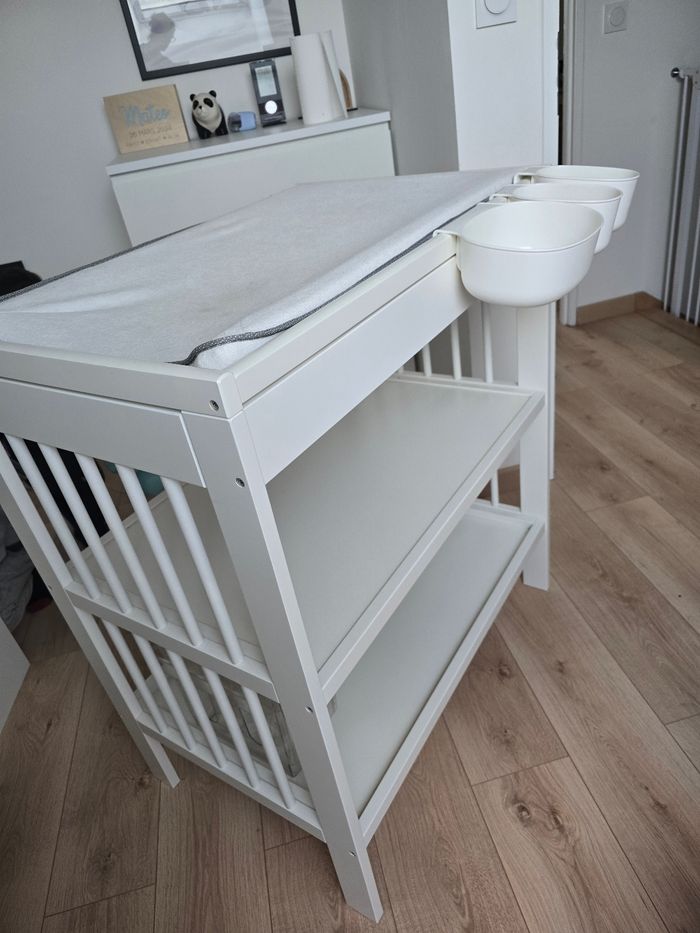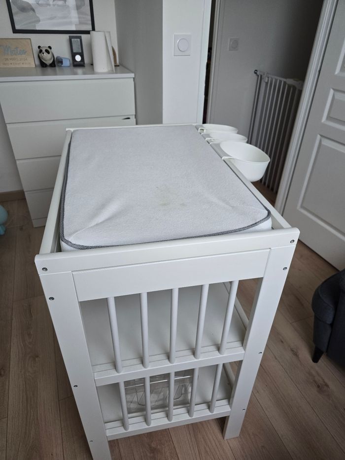 Bonjour, Je mets en vente ma table à langer modèle IKEA modèle GULLIVER. + matelas a langer vadra Etat impeccable Largeur: 82 cm Profondeur: 54 cm Hauteur: 93 cm Prix neuf 129€ + 24.99€