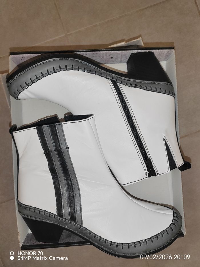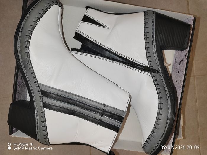 Neuves A fermeture eclair Blanche avec bandes grises sur le côté Taille 41 Jamais portees #geliscyrillechaussures Ref2
