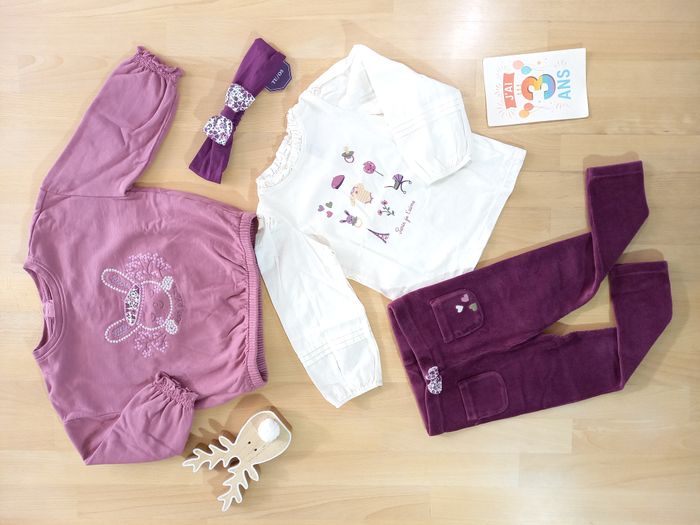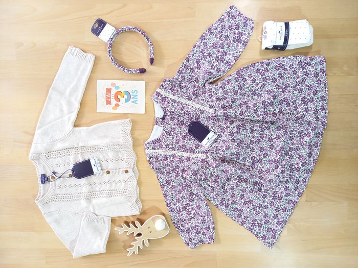 Ensemble 8 pièces de la marque Sergent Major, taille 36 mois, 92 cm 🎀 Vêtements issus du thème: Chouquettes à Paris Autres vêtements de ce thème en allant sur ce lien: #cChouquette 🌼​ Idéal pour l'arrivée du printemps! 🌼​ ✨ Si vous ne souhaitez pas certains articles: serre-tête, bandeau ou collants je peux les supprimer du lot ✨ ✔️​ Toutes les pièces sont en 36 mois, 92 cm. J'ai pris la mauvais affichette taille pour faire certaines de mes photos, (celle en 3 ans), il s'agit bien de 36 mois, 92 cm et non pas de 3 ans 98 cm. Il se compose de: - une paire de collants écrus à pois, pointure 23/24, étiquetés 🏷 - un bandeau violine taille unique, étiqueté 🏷 - une robe manches longues imprimé type liberty, étiquetée 🏷 - un cardigan ajouré fantaisie écru, étiqueté 🏷 - un sweat motif lapin légèrement molletonné, en excellent état porté 2 fois - un legging prune en velours tout doux, en excellent état porté 2 fois - un t-shirt écru à motifs, en excellent état porté 2 fois - 1 serre-tête étiquetés ✨ Je vais commencer les publications printemps/été d'ici la fin du mois! N'hésitez pas à vous abonner à mon profil pour suivre mes nouveautés. Beaucoup de Sergent Major à venir! 🎀​​ Articles 100% fille dans mon dressing, des articles de puériculture, et des jouets de la naissance à 6-7 ans.
